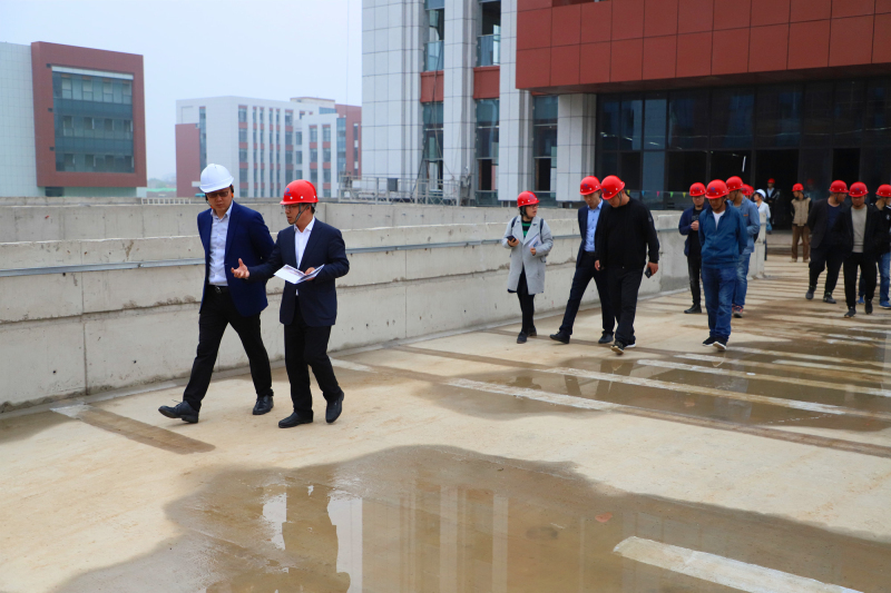 天元裝飾副總經(jīng)理宋小永(右)向張軍董事長(zhǎng)(左)一行介紹臨沂市委黨校新校建設(shè)項(xiàng)目